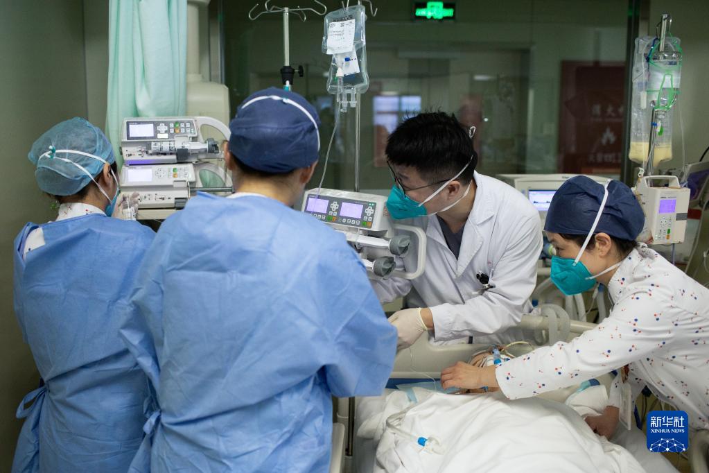 1月12日,在復旦大學(xué)附屬華山醫院虹橋院區收治肺炎患者的重癥監護室,醫護人員給患者換俯臥位。