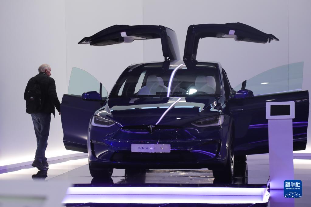 1月13日,一名男子在比利時(shí)布魯塞爾舉辦的第100屆布魯塞爾車(chē)展媒體預展上參觀(guān)特斯拉Model X汽車(chē)。