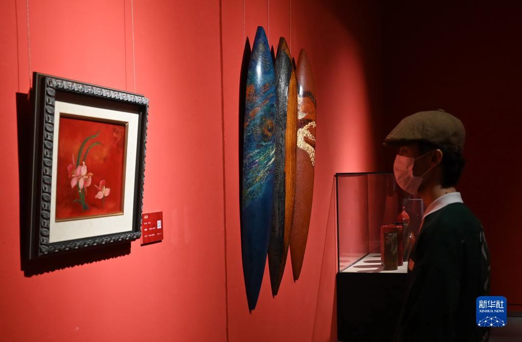 當日,“漆緣——臺灣現當代漆藝術(shù)作品展”在福建省美術(shù)館展出。本次展覽分為“傳承與融合”“交流與演變”“材料與美學(xué)”三個(gè)部分,共展出近百件作品。新華社記者 林善傳 攝