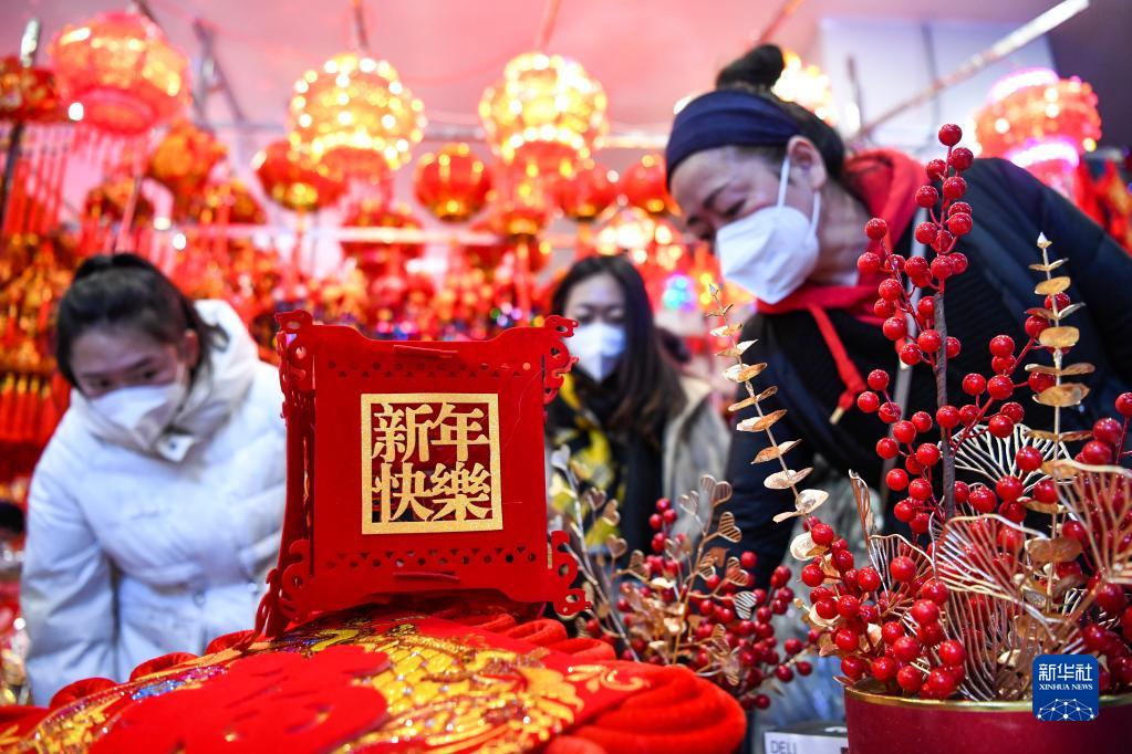 春節臨近,人們紛紛開(kāi)始置辦年貨迎接節日的到來(lái),年貨市場(chǎng)內一派紅紅火火的喜人景象。新華社發(fā)(侯崇慧 攝)