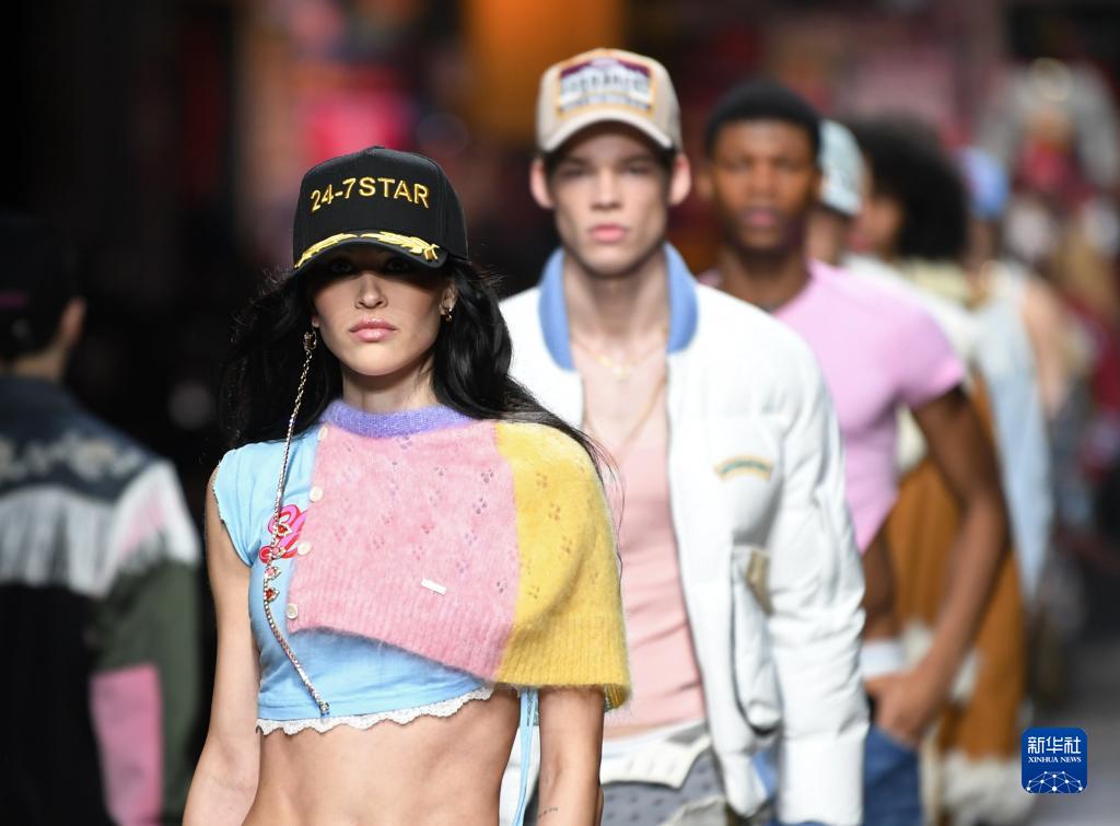 1月13日,模特在意大利米蘭男裝周上展示Dsquared2品牌時(shí)裝。