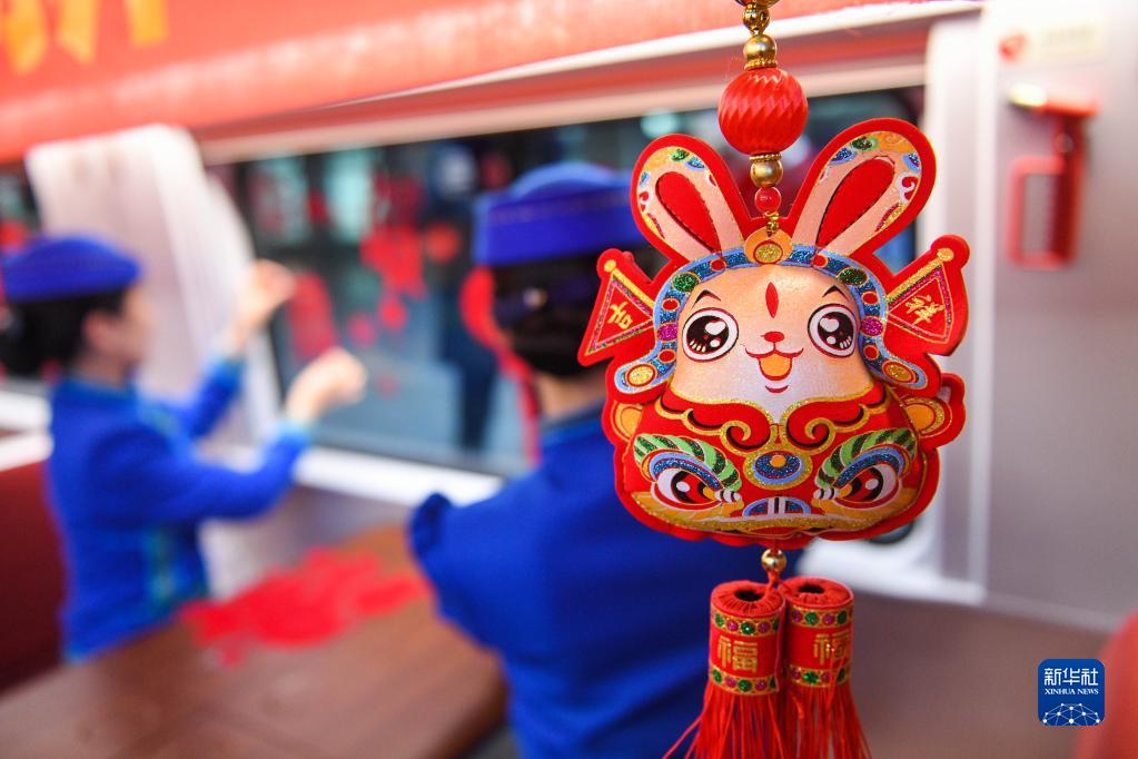 當日正值北方小年,北京開(kāi)往呼和浩特的G2457次復興號列車(chē)被乘務(wù)員們布置得喜氣洋洋。高鐵乘務(wù)員和鐵路烏蘭牧騎隊員們,不僅為旅客奉上一臺精彩演出,還準備了豐富的節日禮品,一路歡聲笑語(yǔ)伴隨著(zhù)乘客。