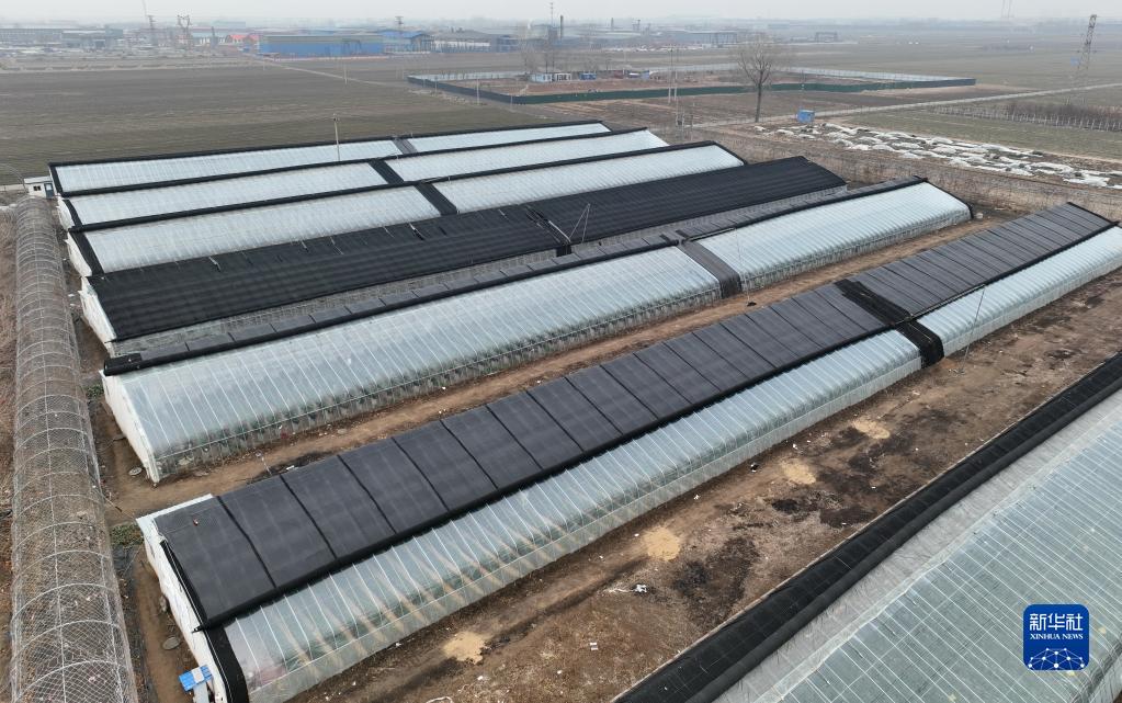 1月14日,唐山市豐潤區燕灃園生態(tài)農場(chǎng)果蔬大棚的保溫被根據氣溫變化進(jìn)行調整(無(wú)人機照片)。