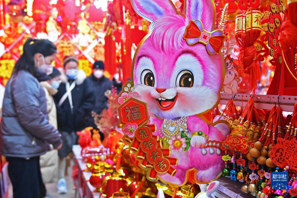 1月14日,市民在山東省煙臺市芝罘區一處年貨市場(chǎng)選購春節飾品。