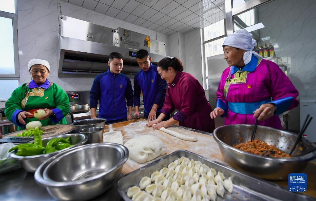 1月8日,西烏珠穆沁旗消防救援大隊消防員和當地群眾一起包餃子。