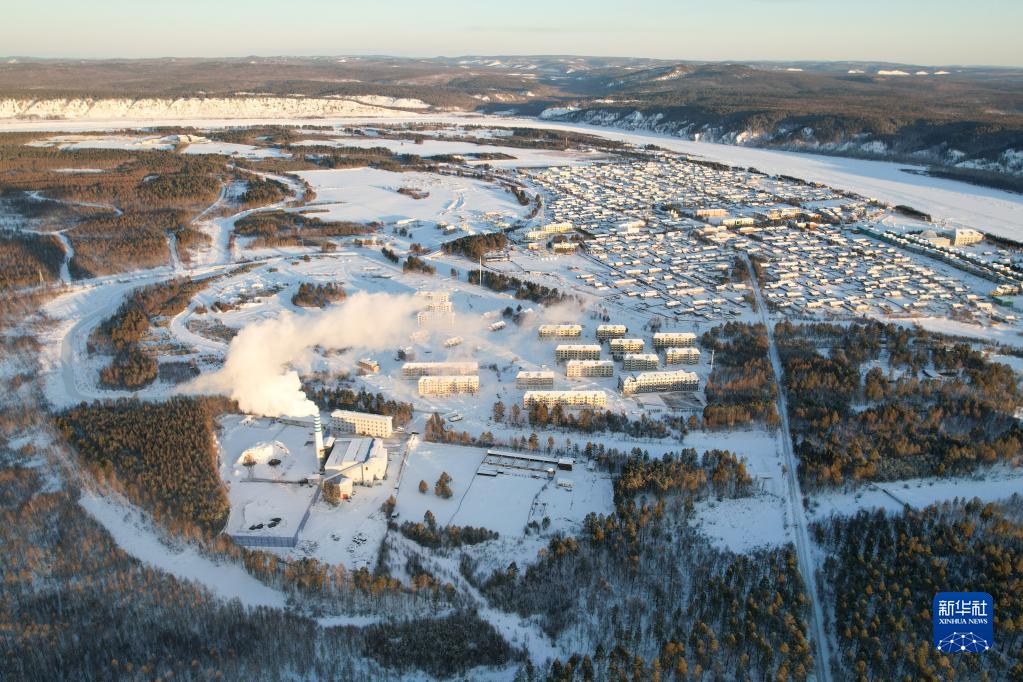 這是1月13日拍攝的漠河華美供熱有限公司全貌(無(wú)人機照片)。