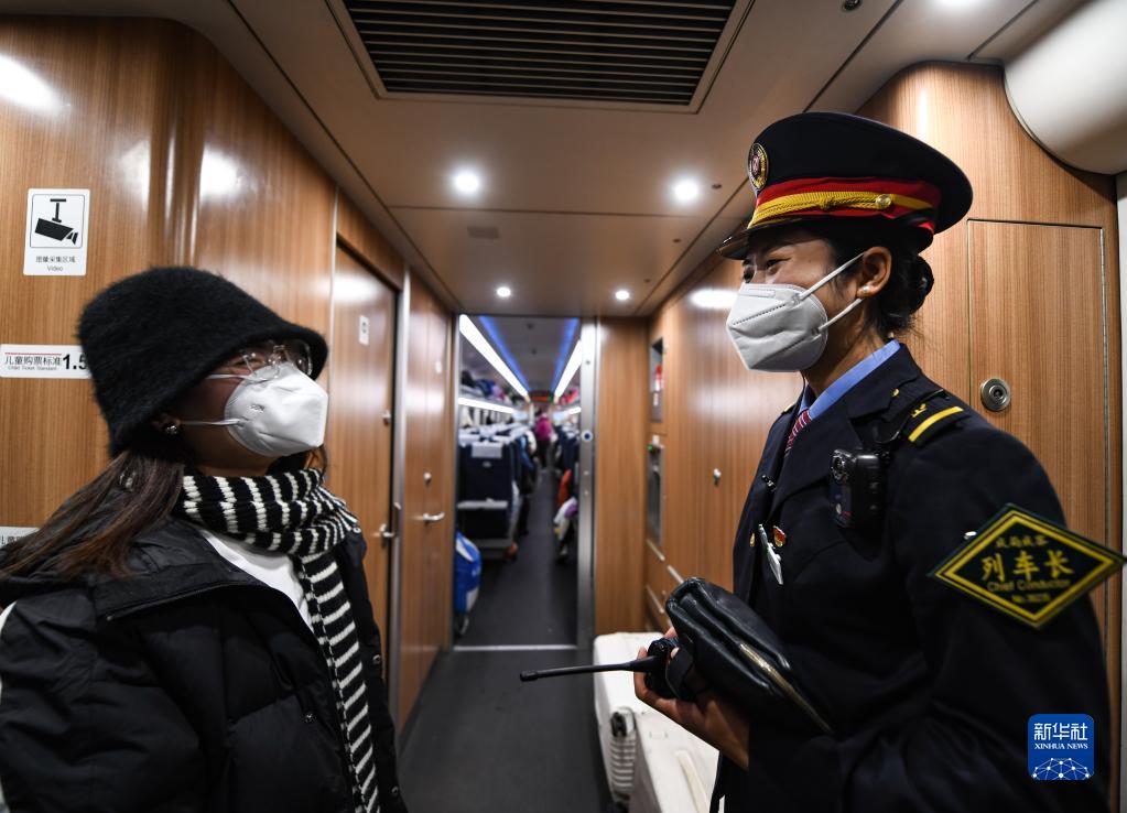 1月11日,在C43次列車(chē)上,阿依布卡(右)遇到表妹同乘。