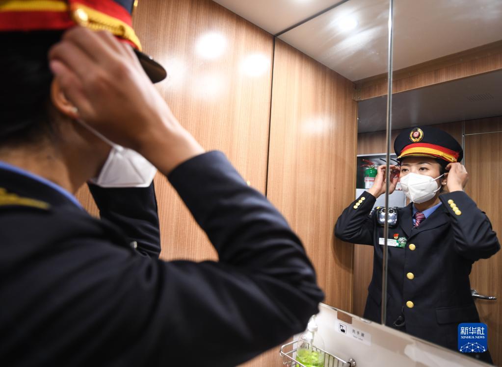 1月11日,在C43次列車(chē)上,阿依布卡在整理著(zhù)裝。