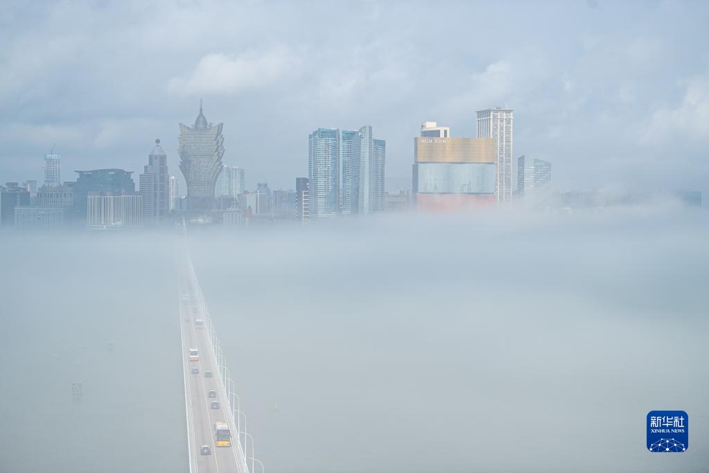 當日,澳門(mén)出現大霧天氣,樓宇在霧氣中若隱若現。