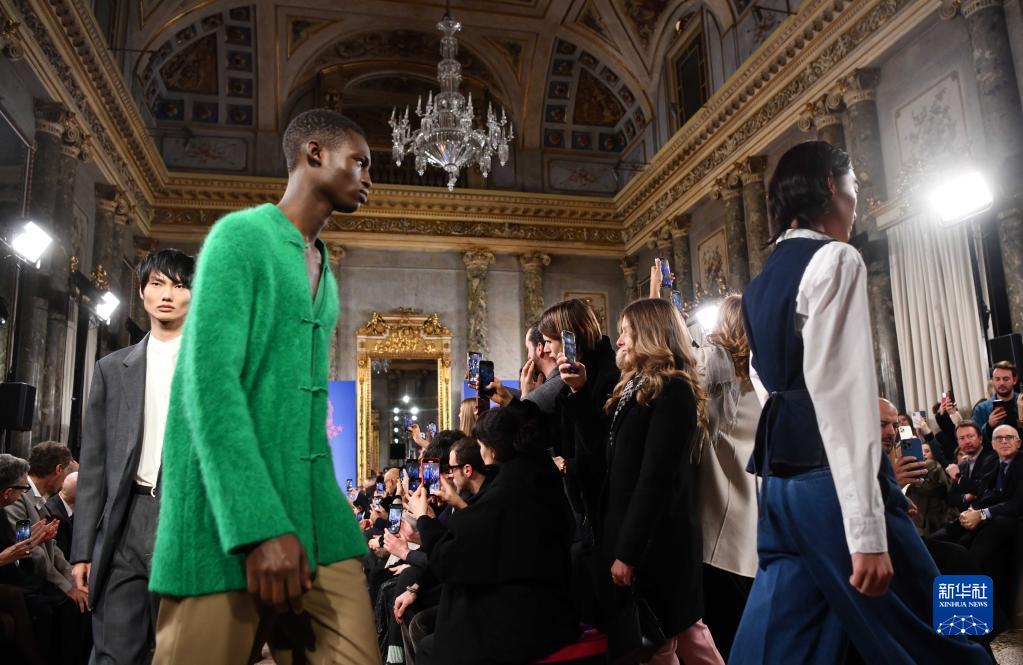 1月14日,模特在意大利米蘭男裝周上展示上海灘品牌時(shí)裝。