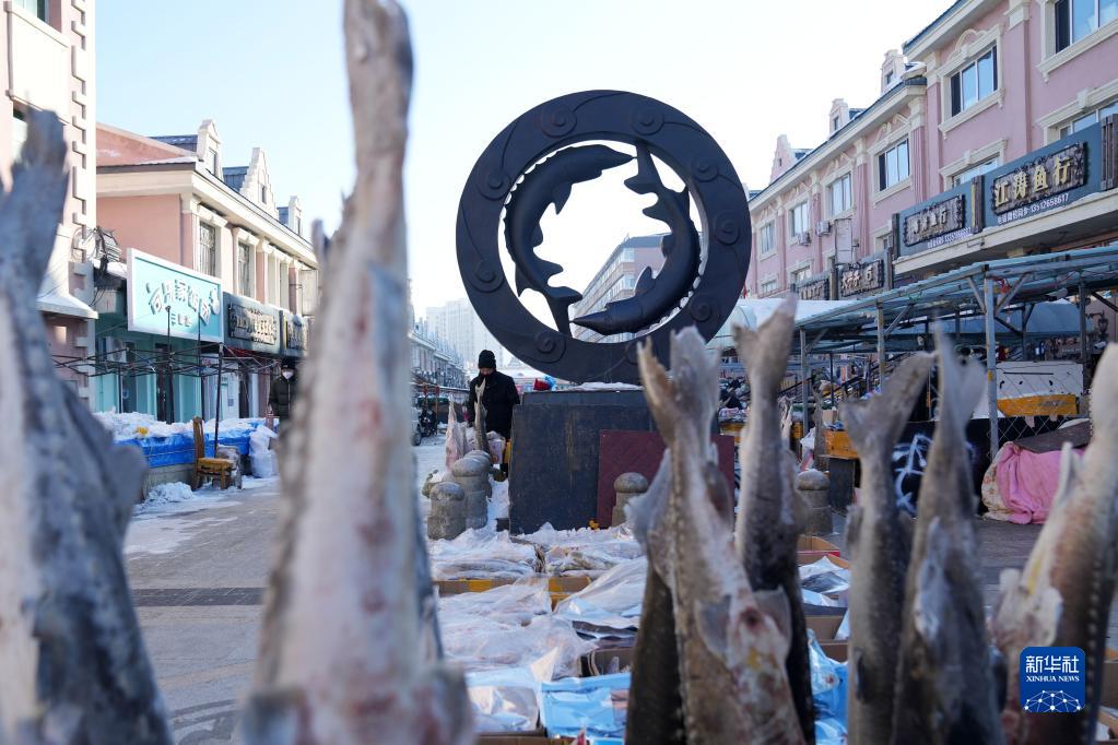 1月9日拍攝的撫遠市東極魚(yú)市一角。