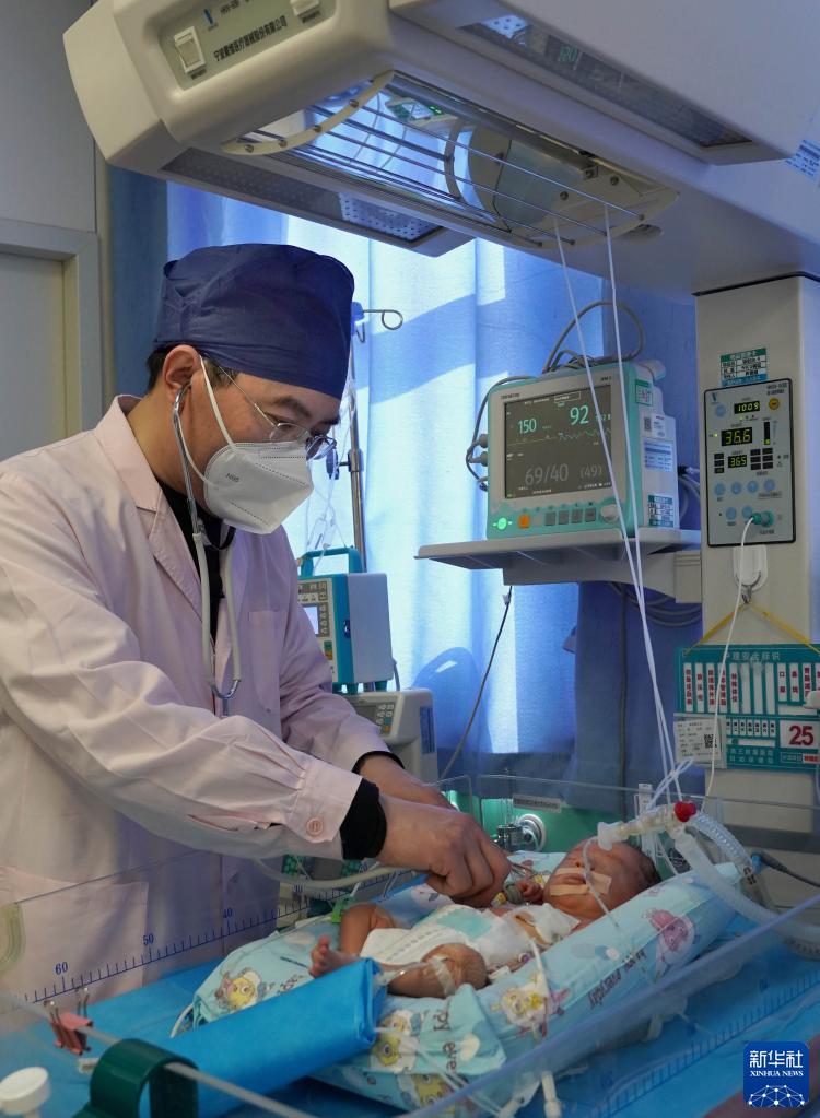 鄭州大學(xué)第三附屬醫院新生兒科主任徐發(fā)林在為患兒進(jìn)行查體(1月10日攝)。