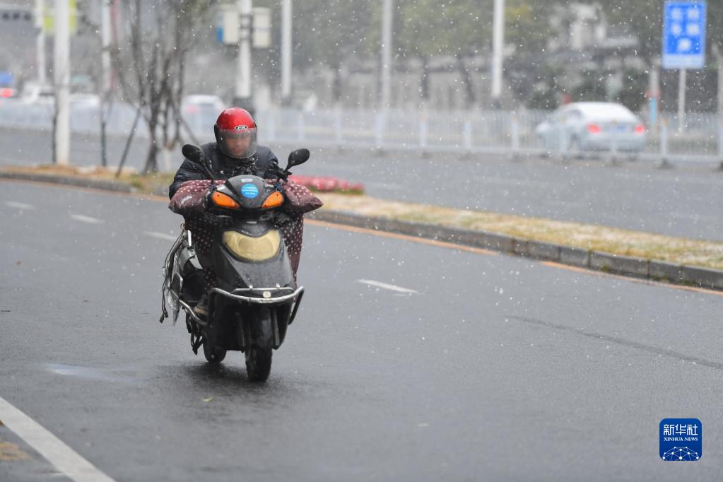 當日,受北方強冷空氣南下影響,湖南省長(cháng)沙市出現降雪天氣。