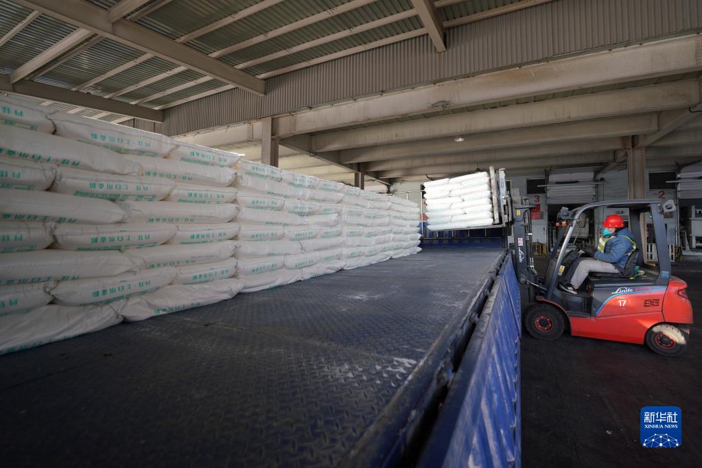 1月15日,在柏鄉縣一家面粉加工企業(yè),工人將面粉裝車(chē)。