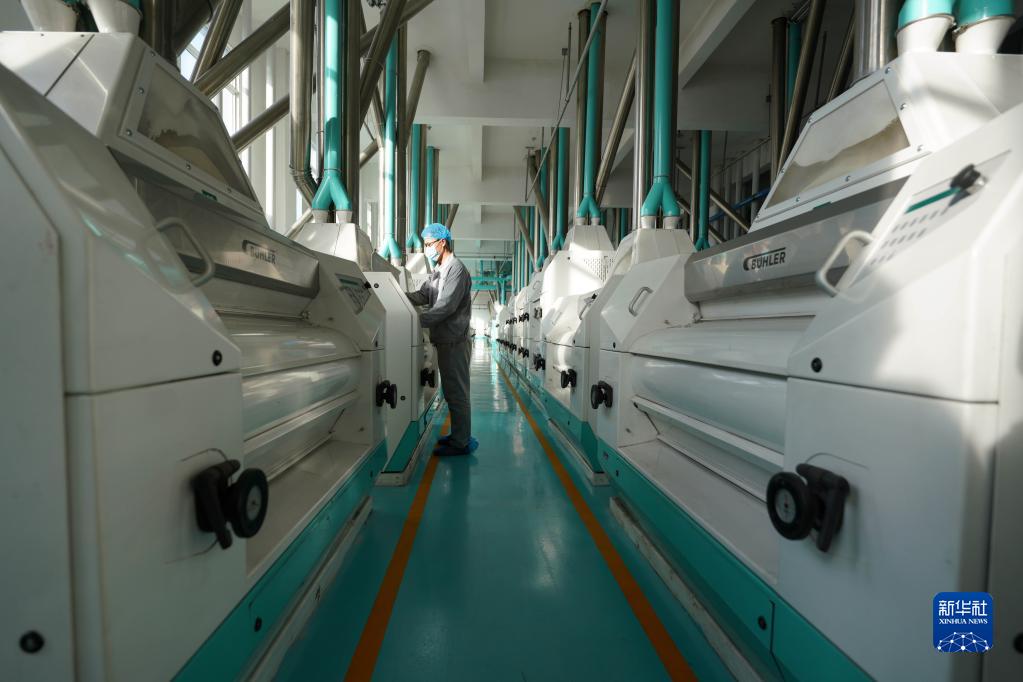 1月15日,在柏鄉縣一家面粉加工企業(yè),工人趙朝朋查看小麥磨粉機工作情況。