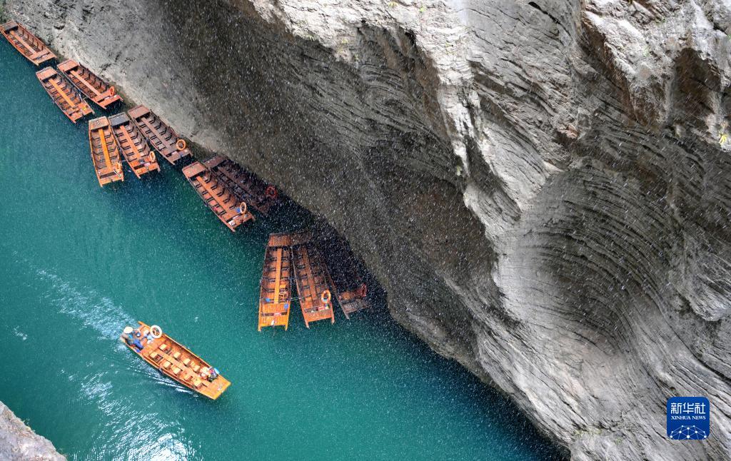 1月15日,小船行進(jìn)在湖北省鶴峰縣屏山峽谷。