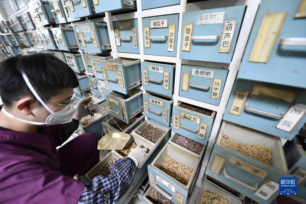 1月15日,唐山市豐南區中醫院醫師在抓配中藥。