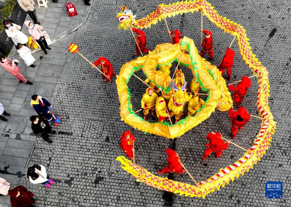 春節臨近,安徽省亳州市舉辦民俗表演迎新春活動(dòng),民間藝人表演舞龍、斗驢、抬花轎、扭秧歌等民俗節目,迎接新春佳節的到來(lái)。