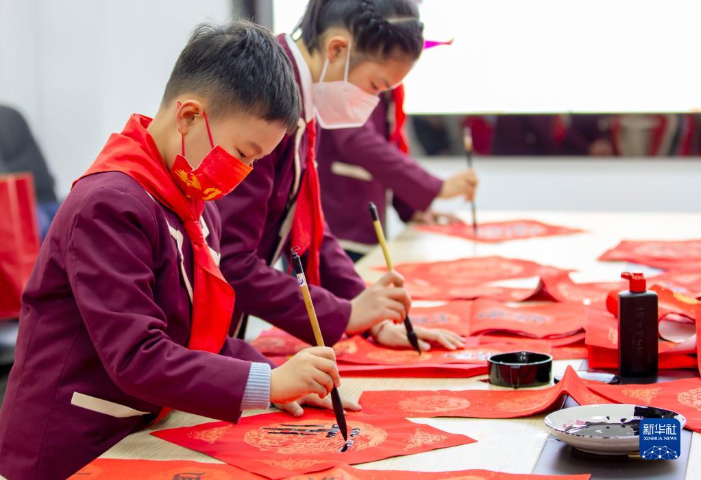 春節臨近,人們書(shū)寫(xiě)傳統的春聯(lián)和福字,喜迎新春。