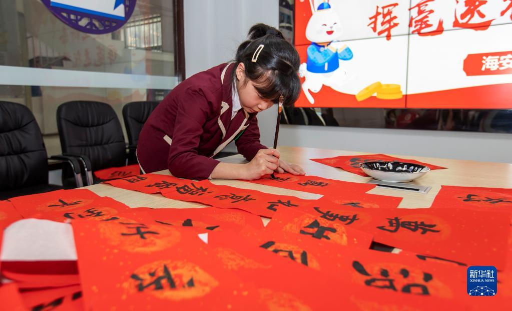 春節臨近,人們書(shū)寫(xiě)傳統的春聯(lián)和福字,喜迎新春。