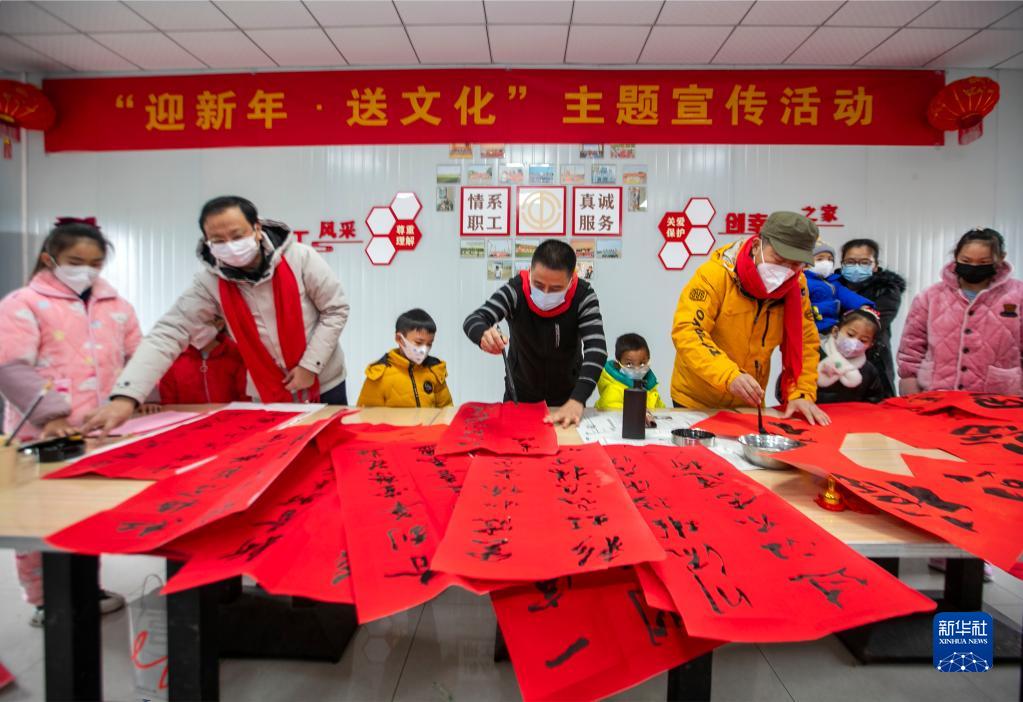 春節臨近,人們書(shū)寫(xiě)傳統的春聯(lián)和福字,喜迎新春。