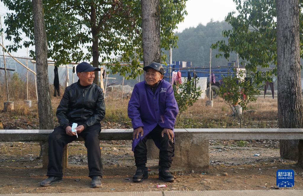 在江西省豐城市鐵路鎮楊坊村,村醫徐秋生(左)和同村的老伙伴聊天,詢(xún)問(wèn)其健康狀況(1月10日攝)。
