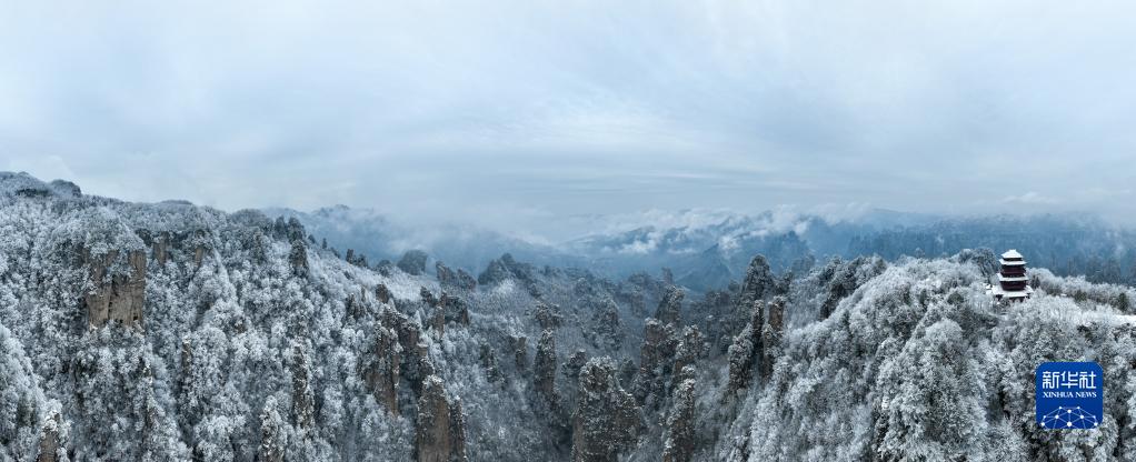 當日,位于湖南張家界的天子山被冰雪覆蓋,峰林銀裝素裹,美如畫(huà)卷。