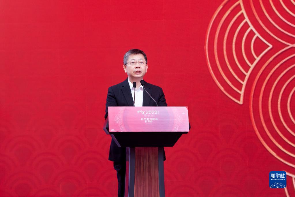 1月16日,在《2023年春節聯(lián)歡晚會(huì )》新聞發(fā)布會(huì )上,中央廣播電視總臺編務(wù)會(huì )議成員姜文波介紹春晚科技創(chuàng )新應用情況。