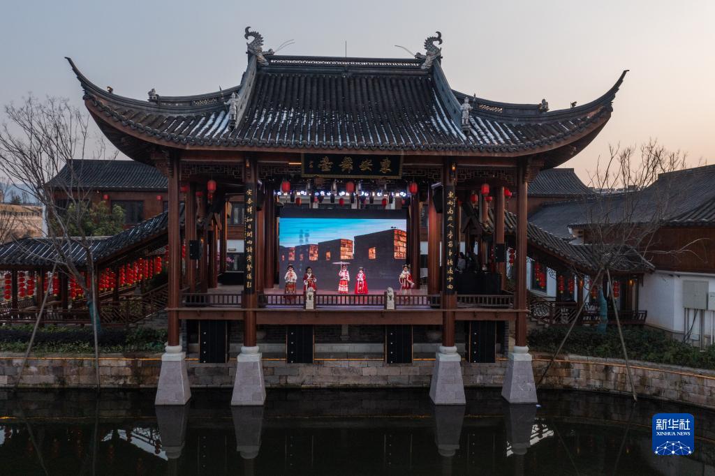 新登鎮宋韻文化特色街區古戲臺上的傳統文化表演(1月16日攝)。