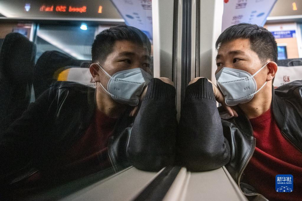 1月15日,易生軍在列車(chē)上看車(chē)窗外風(fēng)景。