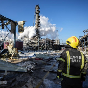 1月16日,消防員在遼寧盤(pán)錦爆炸事故現場(chǎng)開(kāi)展搜救工作。