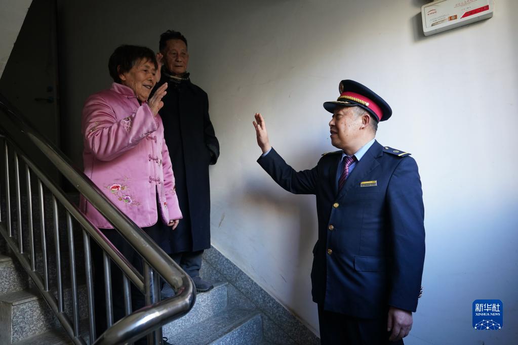 1月15日,丁建華(右)離開(kāi)家時(shí)和父母道別。