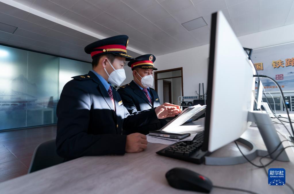 1月15日,丁建華(右)和徒弟姜庭瑞在出車(chē)前核對行車(chē)注意事項。