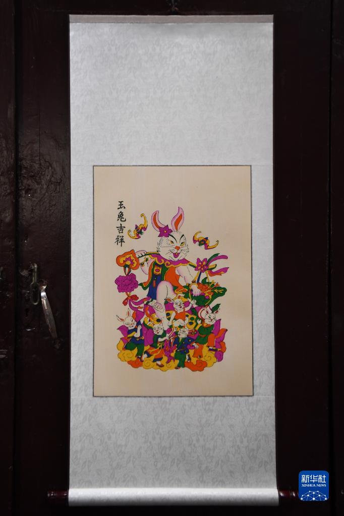 這是1月17日在灘頭鎮福美祥年畫(huà)作坊拍攝的兔生肖年畫(huà)。