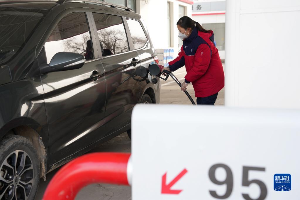 1月17日,河北省邢臺市任澤區一加油站工作人員給汽車(chē)加油。