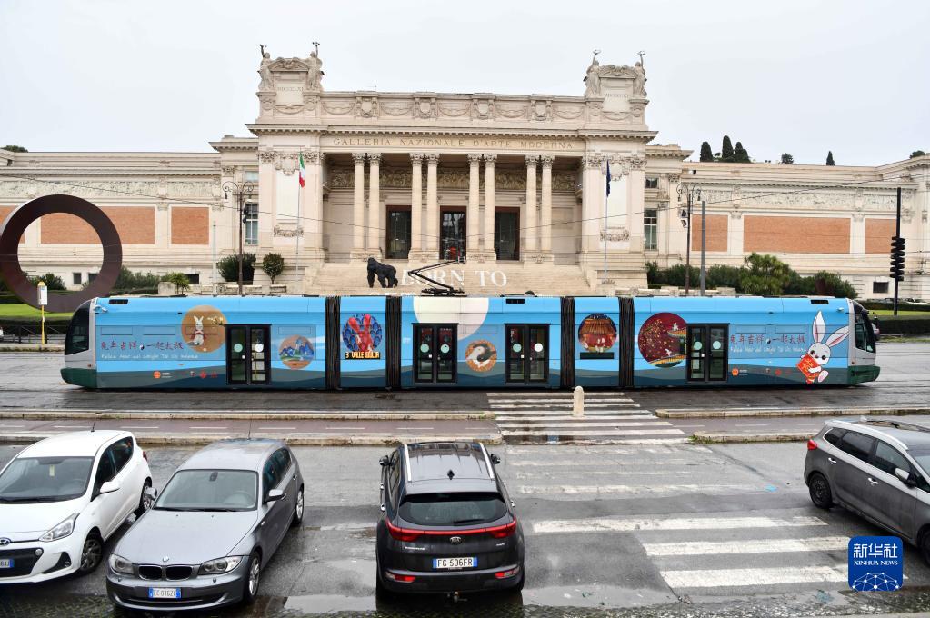 當日,兔年春節主題電車(chē)亮相意大利首都羅馬,慶祝即將到來(lái)的中國農歷新年。
