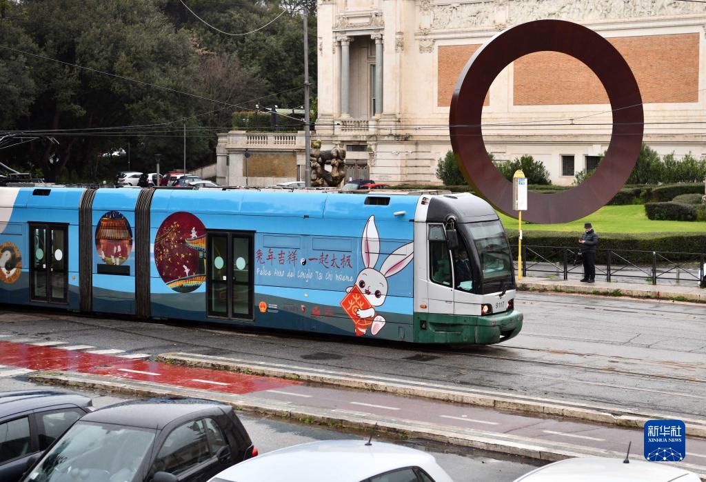 當日,兔年春節主題電車(chē)亮相意大利首都羅馬,慶祝即將到來(lái)的中國農歷新年。