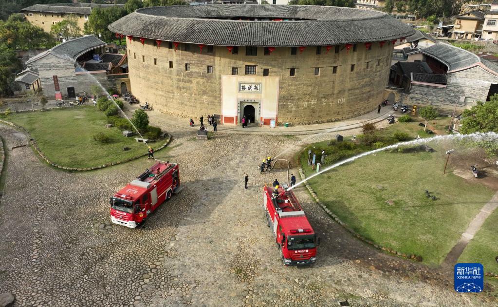 當日,福建省龍巖市永定區消防救援大隊舉行土樓滅火救援實(shí)戰演練。演練結合土樓建筑的火災特性,涵蓋人員疏散、滅火救援、火場(chǎng)供水、隱患排查等,保障節日期間土樓古建筑消防安全。