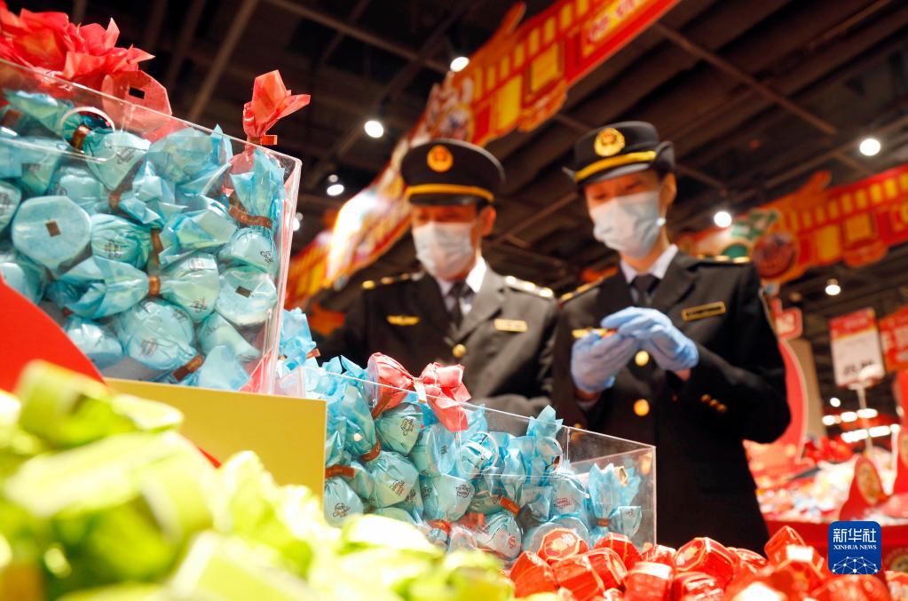 1月17日,邢臺市襄都區市場(chǎng)監督管理局工作人員檢查一家超市的糖果。
