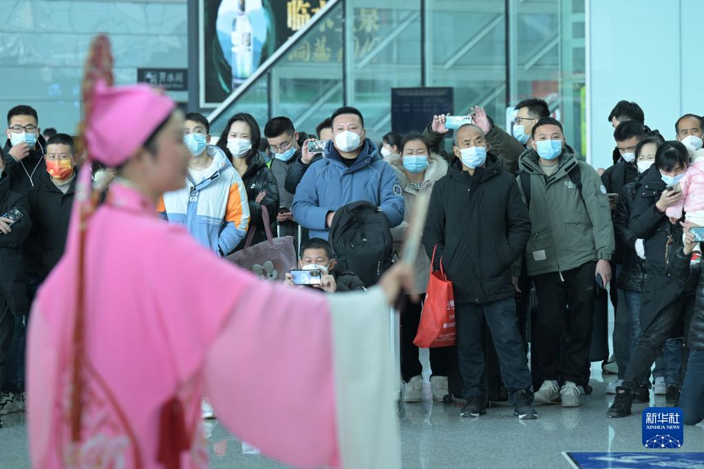 當日,一場(chǎng)“徽文化送我回家過(guò)大年”活動(dòng)在合肥南站舉行,安徽省黃梅戲劇院多位演員在候車(chē)大廳內為旅客帶來(lái)精彩的黃梅戲演出,營(yíng)造濃厚的春節氛圍,讓廣大旅客回鄉路上體驗濃濃“年味”。