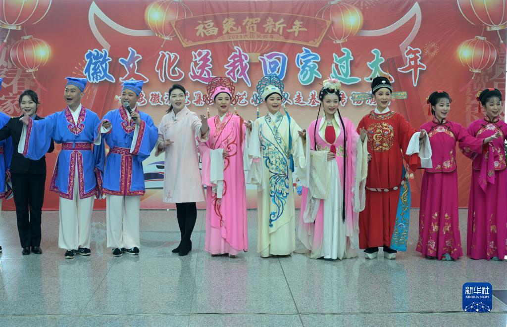 當日,一場(chǎng)“徽文化送我回家過(guò)大年”活動(dòng)在合肥南站舉行,安徽省黃梅戲劇院多位演員在候車(chē)大廳內為旅客帶來(lái)精彩的黃梅戲演出,營(yíng)造濃厚的春節氛圍,讓廣大旅客回鄉路上體驗濃濃“年味”。