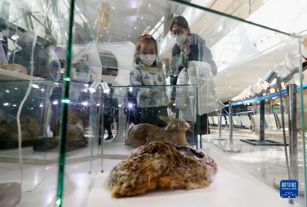 1月18日,參觀(guān)者在一組兔類(lèi)標本展品旁駐足觀(guān)看。