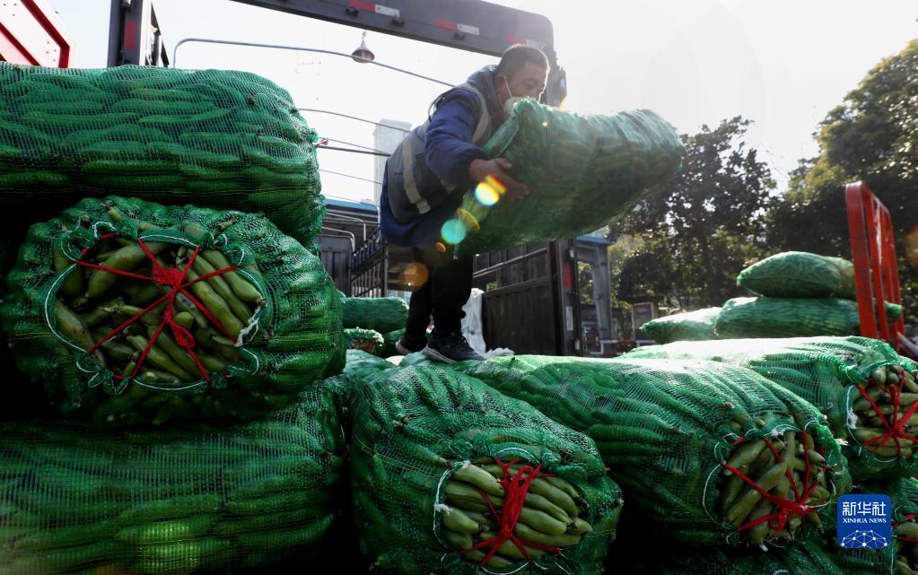 1月17日,在上海江橋蔬菜批發(fā)市場(chǎng)內,一位客商將來(lái)自云南的蠶豆從卡車(chē)上卸下。