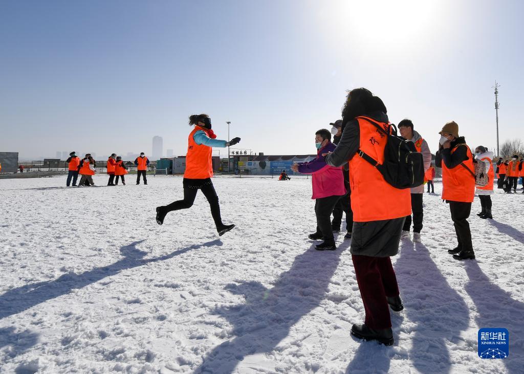 1月18日,殘疾人在銀川市閱?;﹫?chǎng)參加雪地接力賽。