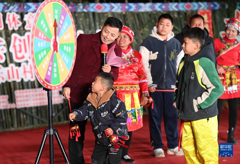 1月17日晚,村民在“村晚”活動(dòng)上進(jìn)行游戲互動(dòng)。