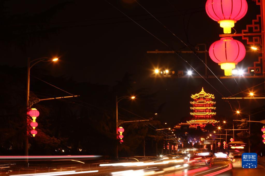 湖北省武漢市黃鶴樓附近路段夜景(1月17日攝,無(wú)人機照片)。