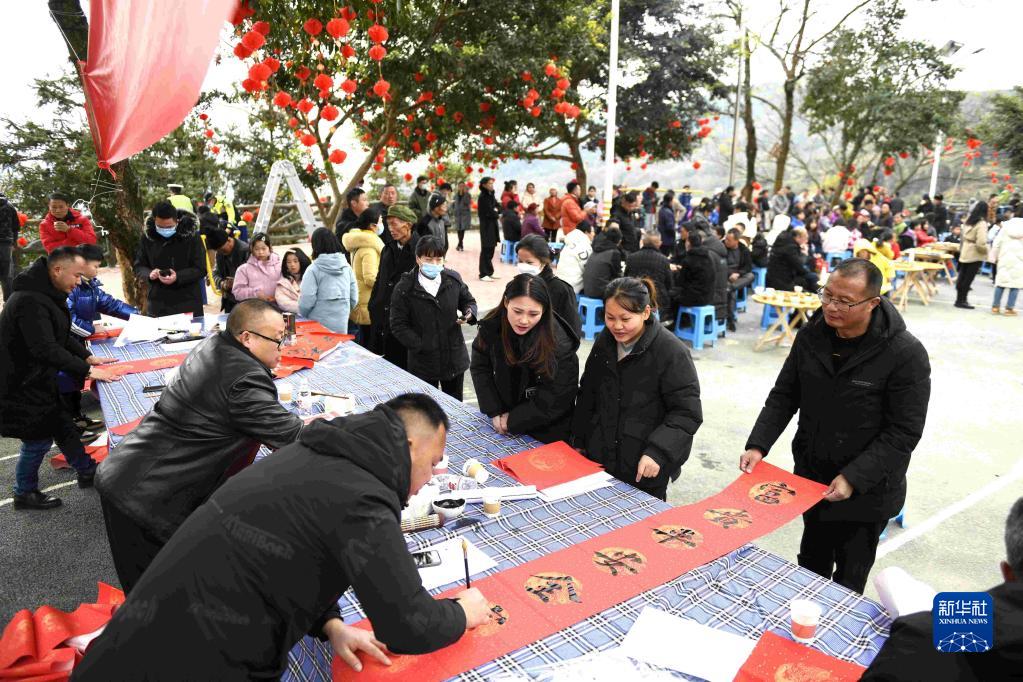 春節臨近,各地舉行寫(xiě)春聯(lián)送祝?;顒?dòng),書(shū)法志愿者為群眾書(shū)寫(xiě)并贈送新春對聯(lián)和福字,送上新春祝福。