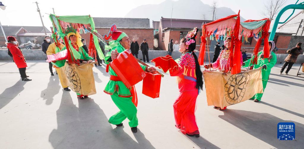 春節臨近,河北省遵化市鄉村民俗演出活動(dòng)陸續展開(kāi),民間藝人們表演舞龍舞獅、劃旱船、趕驢等傳統民俗節目,迎接新春佳節。