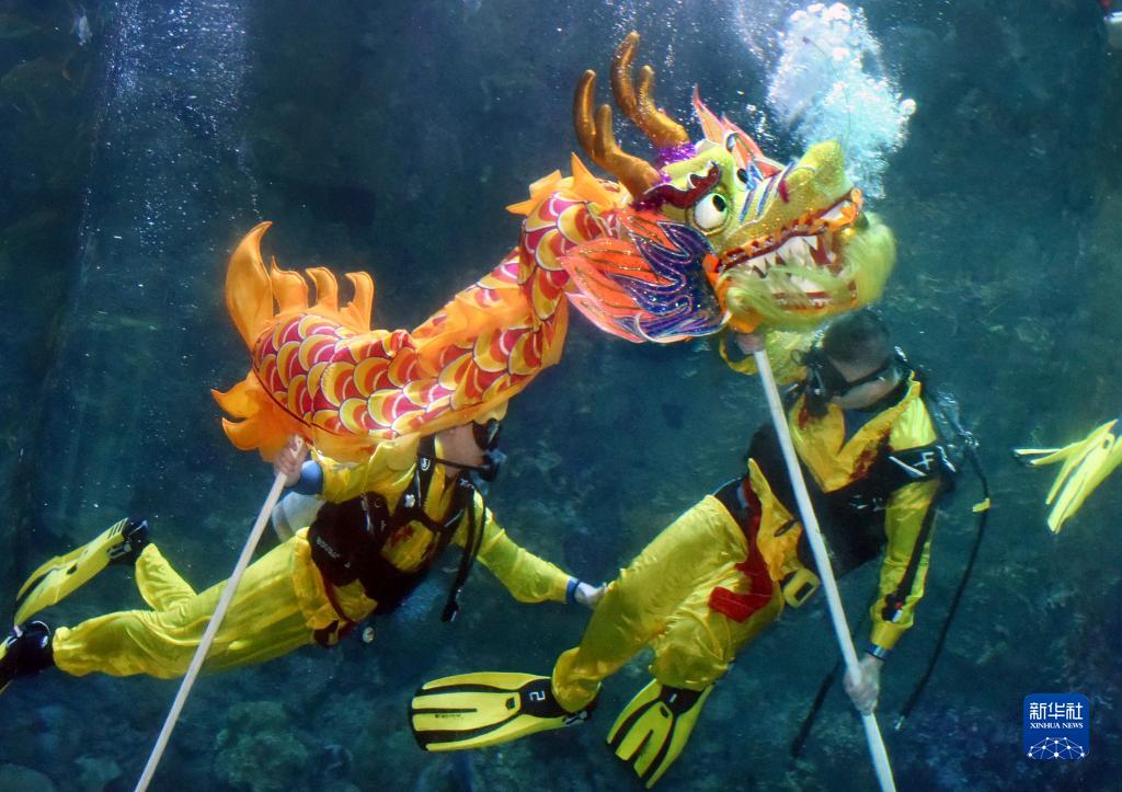 春節臨近,青島極地海洋公園在春節期間推出了“海底舞龍”和水下拜年等賀新春活動(dòng),迎接農歷新年的到來(lái)。