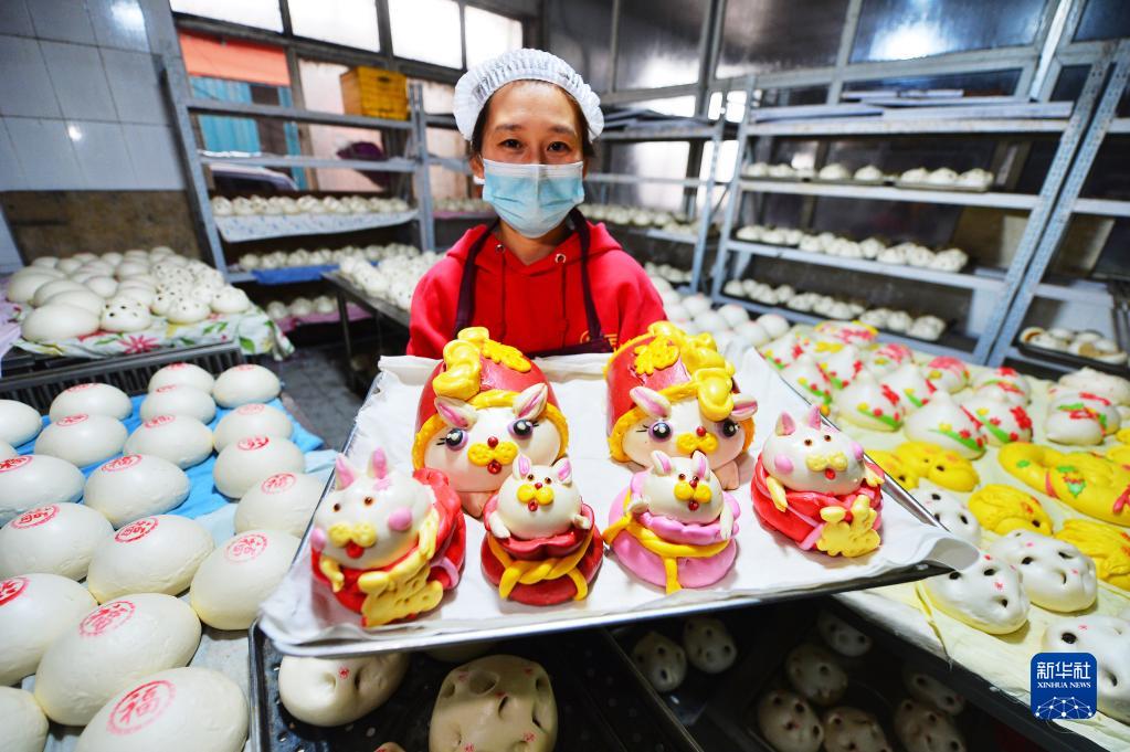 1月17日,山東省青島市城陽(yáng)區紅島街道觀(guān)濤社區的居民在制作傳統花饃,花樣別致的花饃寓意美好生活“蒸蒸日上”。